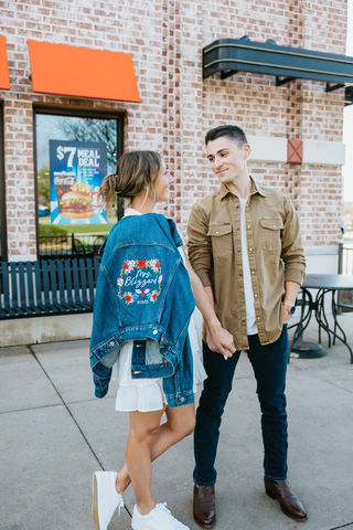 Couple_Mrs Blizzard jacket_heatherbuckleyphotograp Future Mr. & Mrs. Blizzard showing off her Mrs. Blizzard jacket at Texas Dairy Queen - Photo credit: Heather Buckley Photography